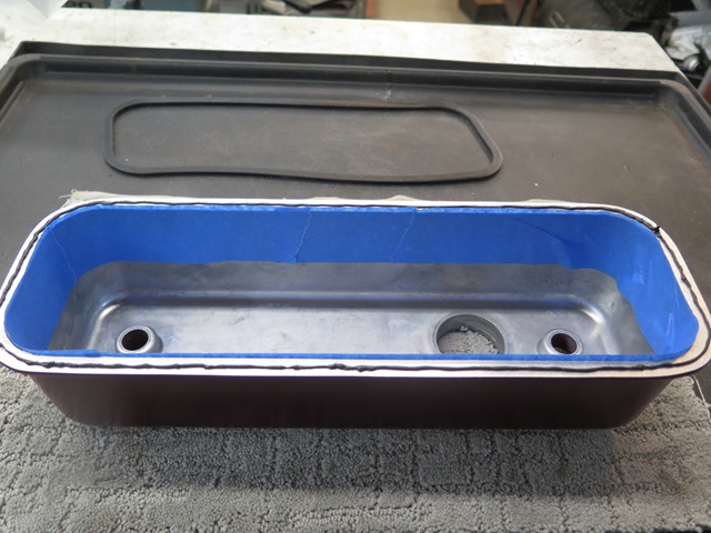 The cover was roughly polished from the factory, but not very well. Crannies weren't touched by the wheels, but did collect deposits of polishing compound that had to be cleaned out before painting. Then a nice blast for tooth: