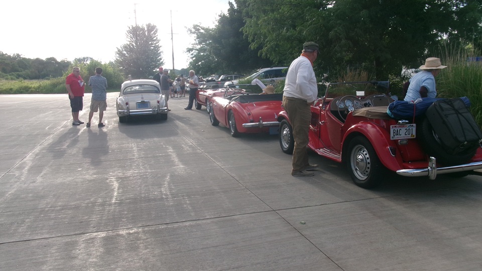 Good morning Fox Cities British Car Club, meeting 7;30-am at Kwik Trip gas station in Menasha, Wisconsin. More than a dozen British cars (some not so little) and a few more people haulers. The caravan hauled out at 8am for a 35 mile drive on county roads and through a few small towns, arriving in Green Bay by 9-am.