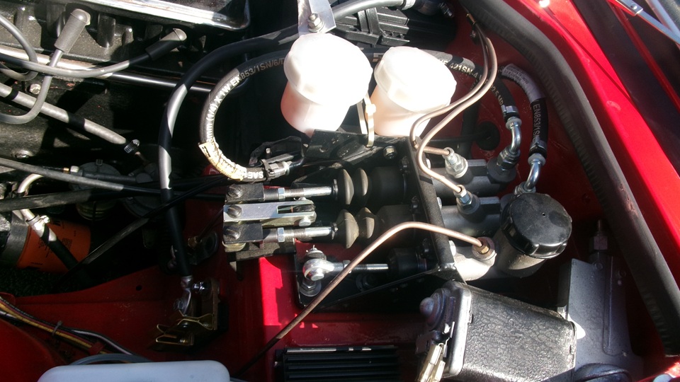 The 1964 Triumph TR4 caught my eye, having an interesting hydraulic set-up, dual line braking system with twin brake master cylinders with equalizer bar in between, and the third master cylinder for the clutch. -- The big Healeys turned out in mass.