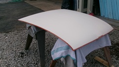 Someone has been working on surfsce finishing the engine bonnet, plus underside finish painting. Tonight the bonnet was getting a couple coats of outer finish paint, "Burnt Orange" for the chosen color.