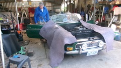 That incident would trigger a discussion and a quick tech session on a similar rust hole in the left side body still of the TR6. Jack it up for easier access, and grind away any abnormally thin rusted metal, keeping full thickness metal. Then grab an aerosol can of expand in place packing foam. Spray the expanding foam through the open hole to fill the cavity inside, until the foam is bulging out proud of the surrounding surface. When the foam has set up, dress it off with a spaghetti file, sand it flush, and it will be ready to smooth out with body diller, sand and paint. Crude maybe, but quick and effective for a not too expensive road car.
