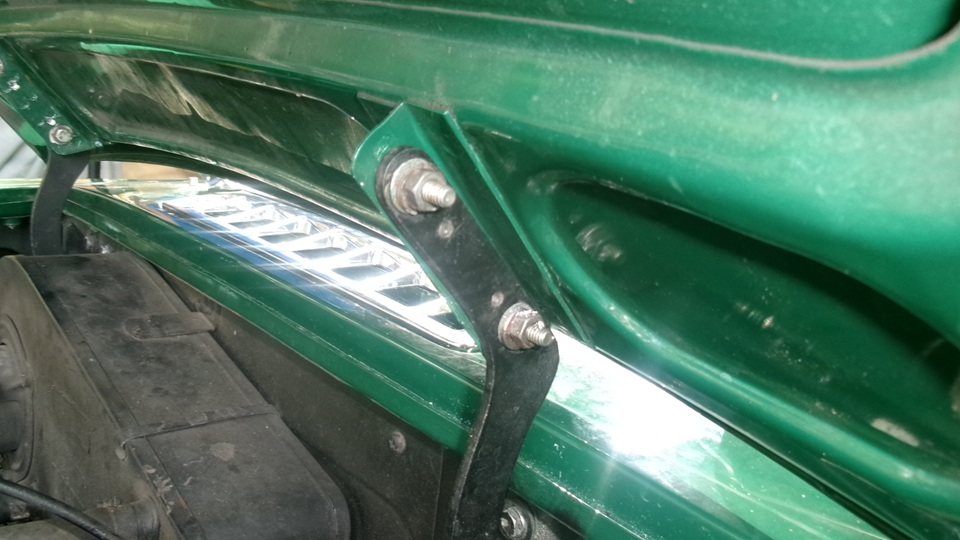 Then needing to make the bonnet fit, two people holding it to align while I was assembling bolts in the slotted brackets. Snug up just tight enough for some friction so it could be realigned with a push, pack some cardboard around the edges to give a little clearance and protect paint, push and nudge until it fits well, then open gently and tighten the bolts. That also worked,