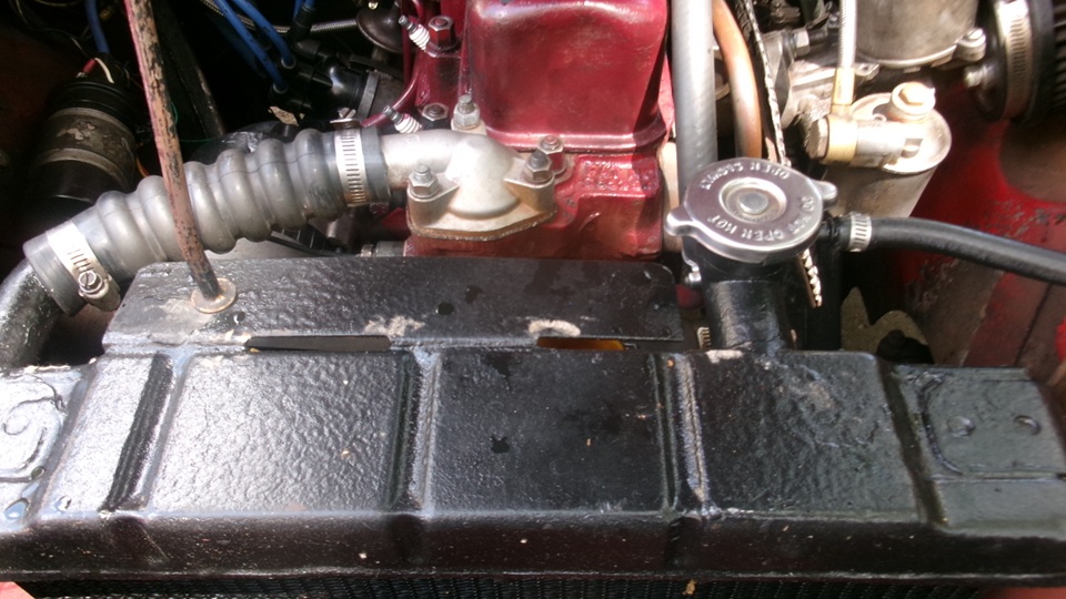 Lastly, drain the plain water and fill the cooling system with 50/50 mix ethylene-glycol coolant, now that we are confident with the integrity of the engine and the new cell core radiator. Readjust fuel mixture and advance ignition timing a little to stifle a rough idle, and reset idle speed. Toddle off to late lunch and good WiFi spot.