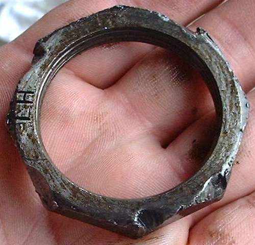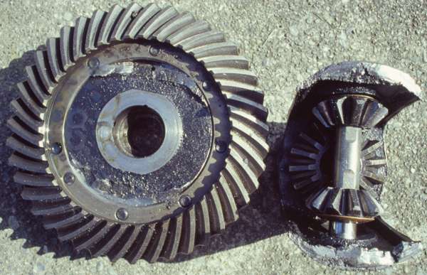 Broken differential carrier. A few of these have been reported. This seems to be a result of casting flaws. (Photo from David Breneman in Rosedale, WA, USA).