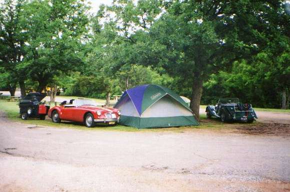 June 3. Good morning from Camp Metanga in Bolweg, Oklahoma. Bob is putting the finishing touches on fixing his second flat, this one from running over a board with a nail in the campground, evening of the first day.