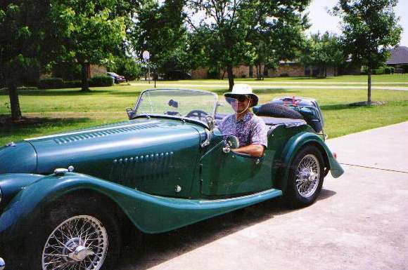 June 2. Meet Bob Nogueira and his Morgan +4! We lined up in front of Merryweather Manor (George and Cathye Merryweather's home) in Lucas, Texas, a suburb of Dallas. Smiles were real. The trip that was to be an adventure was about to begin!