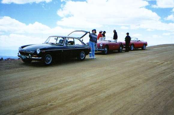 July 13, about noonish - Top of the hill on Pikes Peak. Busy driving on the way up, so get pictures at the top and on the way down. We had picked up a couple of escorts from the Denver area at the entrance gate.