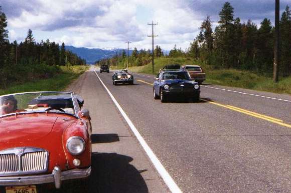 The MGB with the V8 is just loafing along with the rest of the convoy at a measly 60 mph. If it wasn't so noisy it might actually be boring. Then the Morgan +4 (Triumph 2300 engine) is taking the cleanup position, just to cover any stragglers.