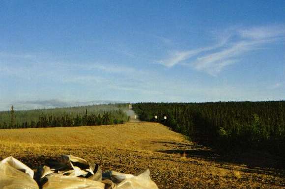 Then we removed all the food from the trailer and cleaned the ice chest as best we could so the bears wouldn't peel the fiberglass off to get a snack. And that fuel can we've been hauling on the front of the trailer for weeks, just for this road? Too bad. Somehow we're just going to have to make it 240 miles between fillups with the 12 gallon fuel tank. But we're bound and determined. Deadhorse or bust! Are we having fun yet?