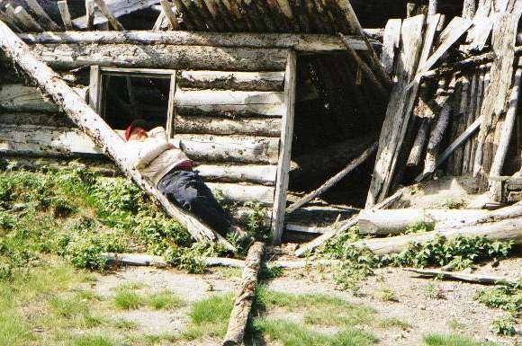 Silver City cabin. Makeshift front porch. "Bring me a beer. I think we'll stay."