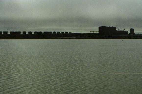 There is a small inland lake at Deadhorse, and significant attention is paid to keeping it in pristien condition. The roads are maintained as gravel surface only, and about ten months of the year the roads are watered down with a sodium-cloride solution to retain moisture and keep the dust down so the gravel dust doesn't spread over everything. Then they have a special road grader that is used periodically to scoop up several inches of the gravel surface from the shoulder of the road, wash the gravel to remove the salt and other residue from motor vehicles, and return the gravel to the road bed. |