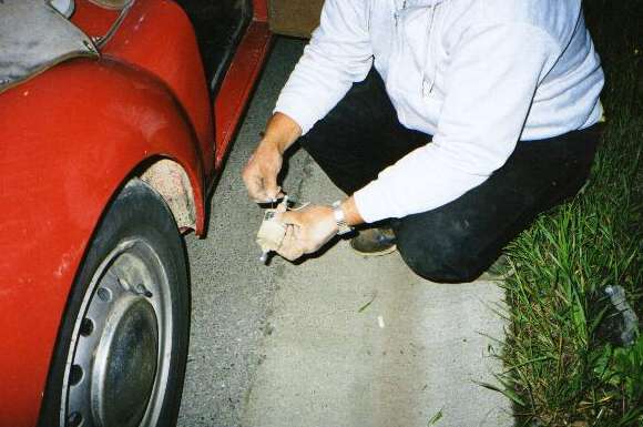 June 21, 3:00 am in Anchorage. We had caught up with John and Gladys McNaughton at a bed and breakfast in Anchorage about 1:00 am to give them the news of Dick Criswell's accident. As we were considering where to hang our hats for the night, this 100,000 mile fuel pump decided to call it quits. Yes, we had another one in the trailer, and it was just a 20 minute swap. Little fella, isn't it? Yes, it's not stock, but it sure is easy to pack, and you get another one nearly anywhere.