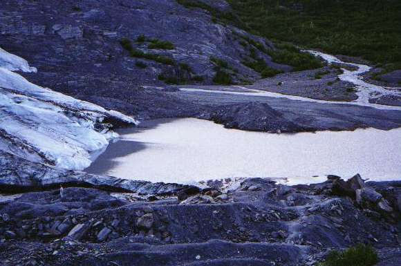 Yep, that's Barney down there, bound and determined to get a piece of glacier ice.