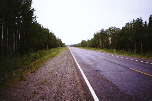 A view of the George Parks Highway northbound at the point of the accident. The tracks across the soft shoulder are still visible here.