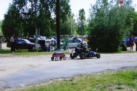 Hopper cart with a boom box in the Radio Flyer wagon.