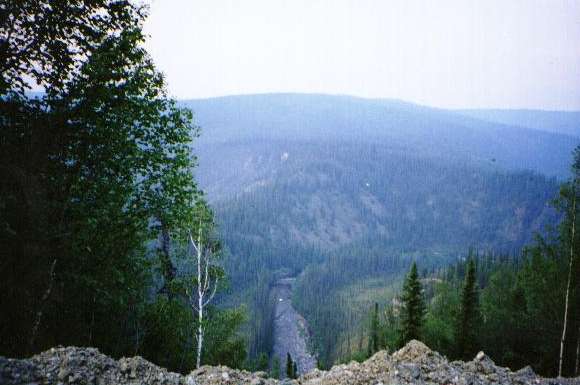 July 5 - To put it in the proper perspective, we drove that 65 miles in about two hours, without seeing another vehicle the whole distance. There are mountains and valleys galore, and hardly a straight stretch of road anywhere. But you do have to be careful on the one-lane sections and watch out for the rock slides. This a view over the edge, as usual with no guard rails.