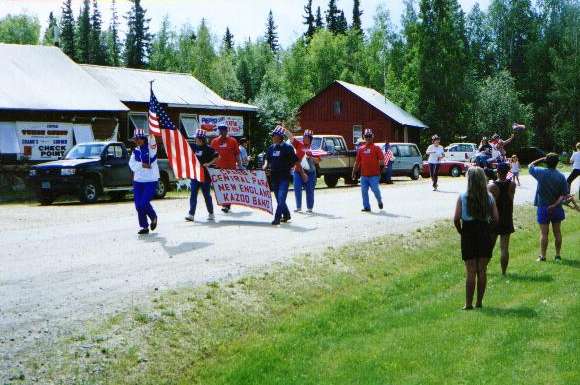July 4- Independence day parade in Central, on the Steese Highway 35 miles shy of Circle City. That's Crabb's Central Park New England Kazoo Band leading the parade.