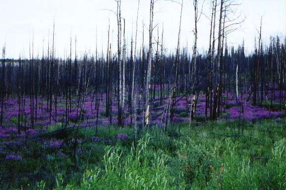 More fire weed. About 30 miles of it found here after a forest fire in the summer of 1995. This shot was taken on the Klondike Loop just south of Pelly Crossing, about 20 miles north of Minto.