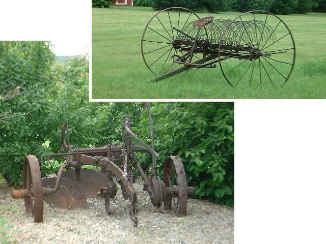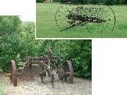 What machine is near the two bottom plow? -- DUMP RAKE (or Hay Rake) |