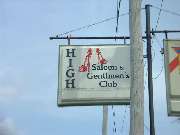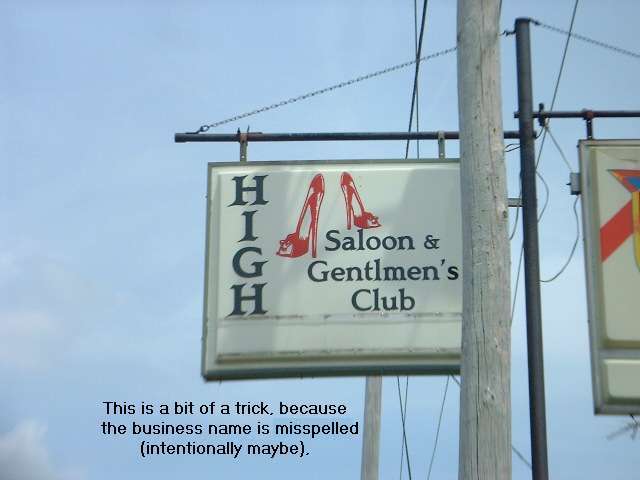 What club is high? GENTLMEN'S (You have to misspell the answer, just like the sign). |