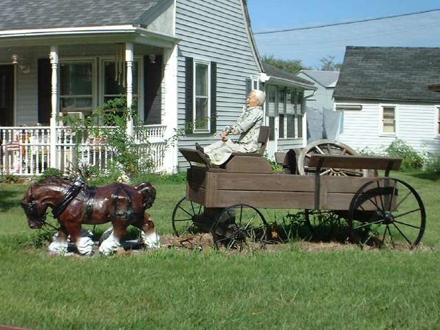 Now taking a quiet side road from Big Rock to Hinkley, we are challenged with a dozen questions in four miles. The entire country used to be horse country before we had steam engines and tractors and trucks and cars. There still are lots of horses around, but today more riding horses than work horses. Historically Plowman's Park at Kenny Field is a big deal, hosting a horse drawn plowing contest. As so happens the tractor drawn plows are now obsolete antiques, as farmers have turned to chisel plows, field cultivators and minimum tillage as a matter of efficiency, so the plows are now yard decorations along with steel rimmed wooden wheel wagons.