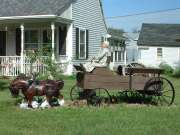 Somonauk again is about mile long, but this time with a few side streets. We find more Antiques, a museum, and a vintage version of the strip mall (stores on both sides of the main highway). The back street on way out of town appears to be the "seemlier" side of affairs, all in good fun.