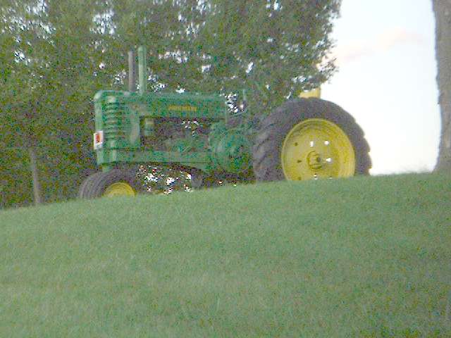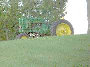 What brand of tractor is on the hill? -- JOHN DEERE (Sorry the tractor was gone today, possibly to the Sandwich Fair) |