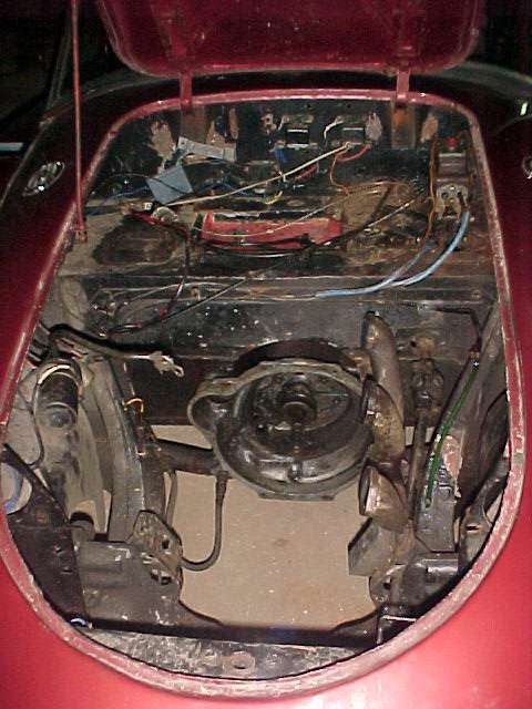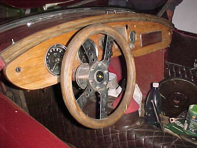 hello. here the pictures that you requested me are. pardon for not having responded you before but the computer is of the work and the connection failed for these days. I already solved the problem of the oil, I only lack it, like you can see in the pictures mount the engine and start it. [His engine is not "lacking oil", it only neds to be reinstalled] Looks at the pictures and you will realize that the carb. it is a Weber but the intake manifold it is handmade. takes a look in the dash/instrument panel and you will see that the whole wood is made by hand, the gauges is original. tell me you that believes of all these pictures, and also show you them to the world. Very soon I will send you more images. greetings and affections Demis.