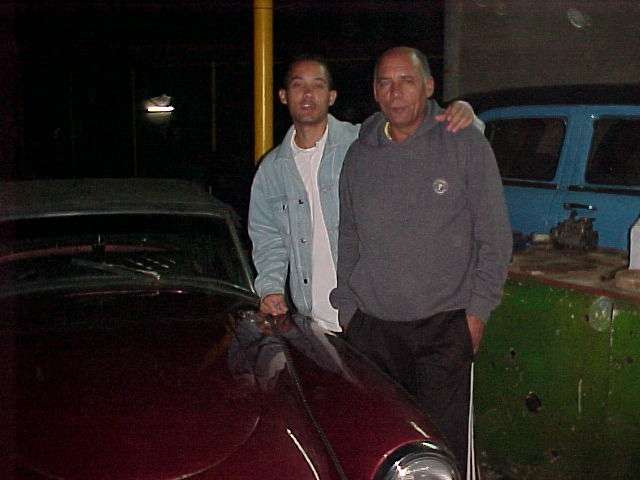 Hello. a lot of people have written me to my mail. I owe you thank you for what you have made for my. I will try to respond you the questions that you make me. The bald man that this with me in the picture is my stepfather. the blue car that you observe in the bottom is a Plymouth and the owners are the mechanics that are helping me to solve that of the MGA. Here I send you pictures of the Plymouth and the MGA. The tires are 185/65 r14 and the wheels are 14" "US Wheels". I will also tell you that the whole electric system is handmade that is to say I made it me with my own hands and without planes (I am technical in electronic and to invent it was not difficult for my). you are in the correct thing, the tail lamps is of VW.