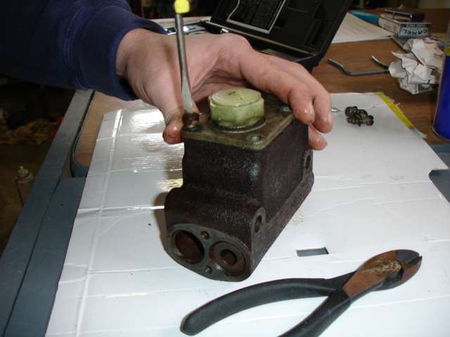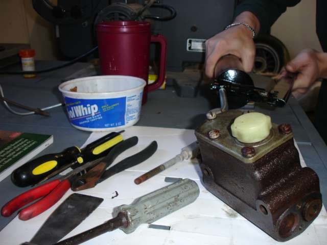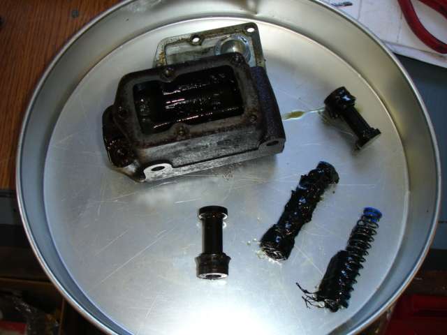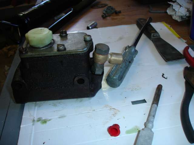 Master Cylinder 7/8" bore with locked up pistons. Getting ready to get rebuilt. |