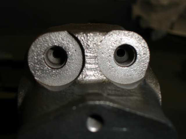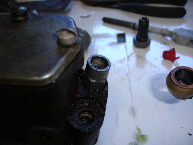 TRICK OF THE TRADE for seized pistons - place banjo bolt, banjo and adapter in one of the holes. |