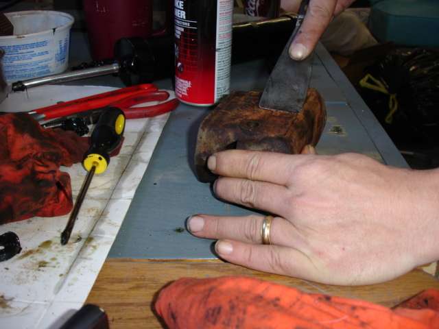 This piston is really stuck on this side. Typically brake side is worse than clutch side. |