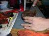I would suggest getting a thick piece of cardboard with smooth surface so any fluids can be wiped up and not soaked in. |
