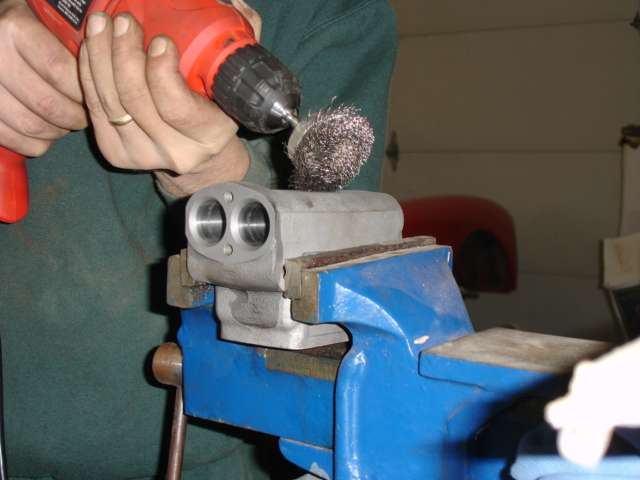 This process brings the core back to origional finish. It will look like it came right from the cast. USE SAFETY GLASSES. FLYING METAL HAIRS. |