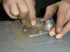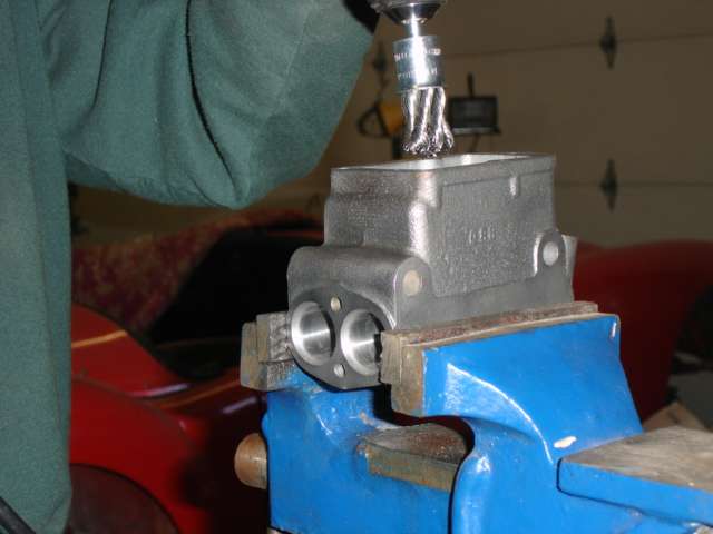 Put hone in high speed drill, insert hone before starting drill. Be cautious, parts may fly. |