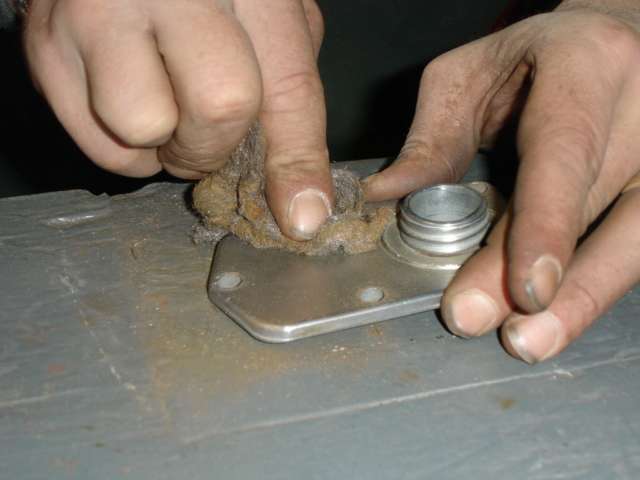 Use a very stiff wire brush to clean inside of reservoir. |
