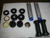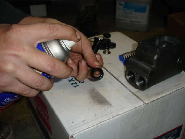 Put rubber seals on pistons. This can be a frustrating task as you have to get rubber over large end of piston. Lube it up. |