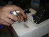 Start pumping the grease gun and watch it come out. |