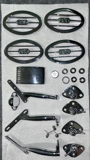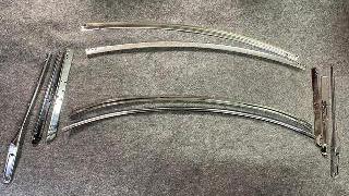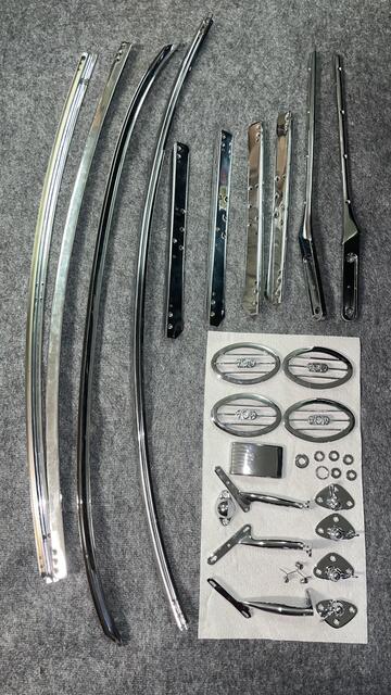 Parts for one complete windshield assembly and another for just the windscreen (one 1500 and one 1600). Also four oval MGA badges, four window insert hold downs, ashtray cover and various washers and a map light cover for the dash. They did the bumpers and brightwork on my Spitfire and I’m definitely a repeat customer. Not fast, not cheap but very well done"!