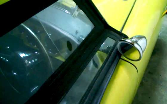Here is a mirror location to be avoided if you have original style MGA 1500 side curtains. OOPS! I can't get my hand in to open the door. Photo compliments of Pat H in Melbourne, Victoria, Australia