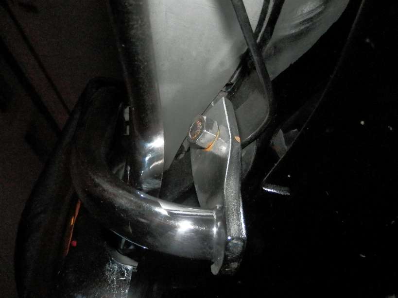 This one submitted by Don Kesler in Forest, VA is so far unknown source. A unique feature of this one is that it is not attached to the bumper or to the bumper spring brackets. It is attached directly to the frame front extension threaded studs, same mounting points used for the bumper assembly attachment. This makes it ridgid, which could make it a good mounting base for accessory driving lamps. However, if it was to be bumped hard enough, it could either bend the bar or possibly bend the front frame extension.