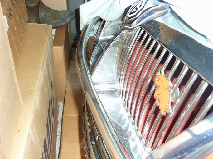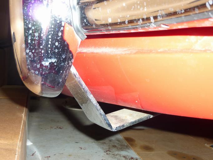 Here's one from the late 60's, submitted by Ted Sokolowski. The car was kind of buried at the time, so best pictures available. I've seen one of these before, just can't remember where. Flat steel mounting straps pass below the front valance panel to attach the bar to the front frame extension.