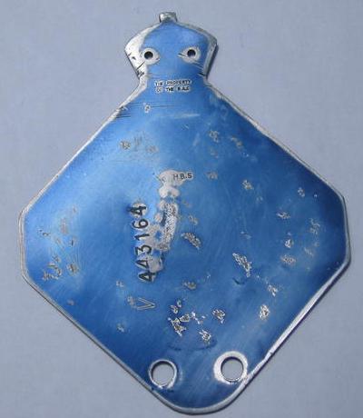 "I asked the RAC if they could provide any history regarding this badge and they very politely responded in a couple of e-mail exchanges. Between what I learned on my own and the info they provided, this badge is an example of an RAC Associate (or 'Get You Home' - as it used to be known) badge that was produced between 1946-54. The individual membership number of V532000 is embossed on the back plate. These badges were made of fairly cheap materials as a result of the scarcities after the war. It has a blue anodized aluminum backing plate and chrome surround with a Georgian crown (George VI) on top. There are also three other markings on this badge:
