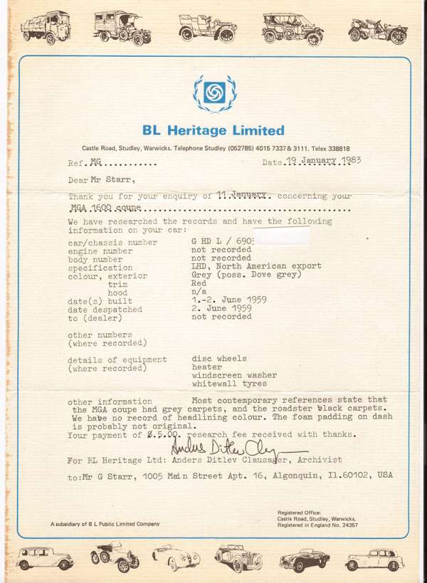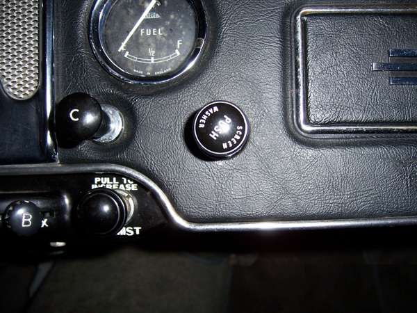 Gary Starr in Illinois, USA. has a factory installed screenwasher, and the Heritage certificate to show it is original. The photo shows the factory location for this accessory washer pump. Since the hole had to be drilled (or punched) after the dash panel was made, it is not certain if the hole was always in the same position. This early 1600 model (coupe) does have the recessed cups, production date June 1, 1959.