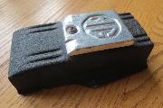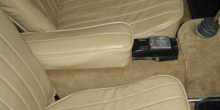 This is an aftermarket ashtray for the MGA, made by the Jerpco Mfg Co in North Hollywood, Calif. It is likely to be more rare than either of the two known factory designs, but interesting nonetheless, and definitely a legitimate period accessory. It has a ribbed top, flanged base with two mounting screws, and a loose fitting cover with gravity detent peg at the front end.
