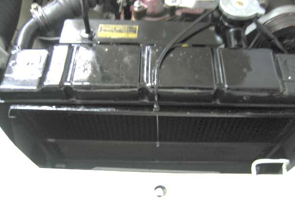 Photos above show the fixed roller and a guide frame that may be intended to prevent the blind from rubbing on the radiator core when being moved up or down. This is about the time it dawned on me why the optional oil cooler is intended to be installed about 1-1/2 inches forward from the radiator, to allow space to install the optional radiator blind immediately in front of the radiator.