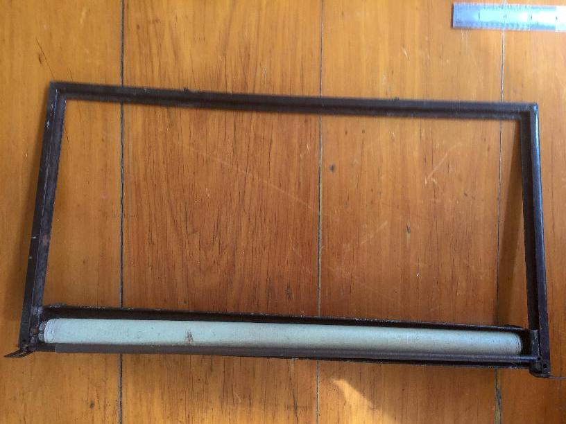 "This is the blind that was installed on my car. There wasn't a frame to guide the blind. Maybe it got lost in the early days. There is also a tube behind the dashboard to guide a wire. You can fix the wire on the left side of the dashboard. The spring inside this blind is still very strong".
