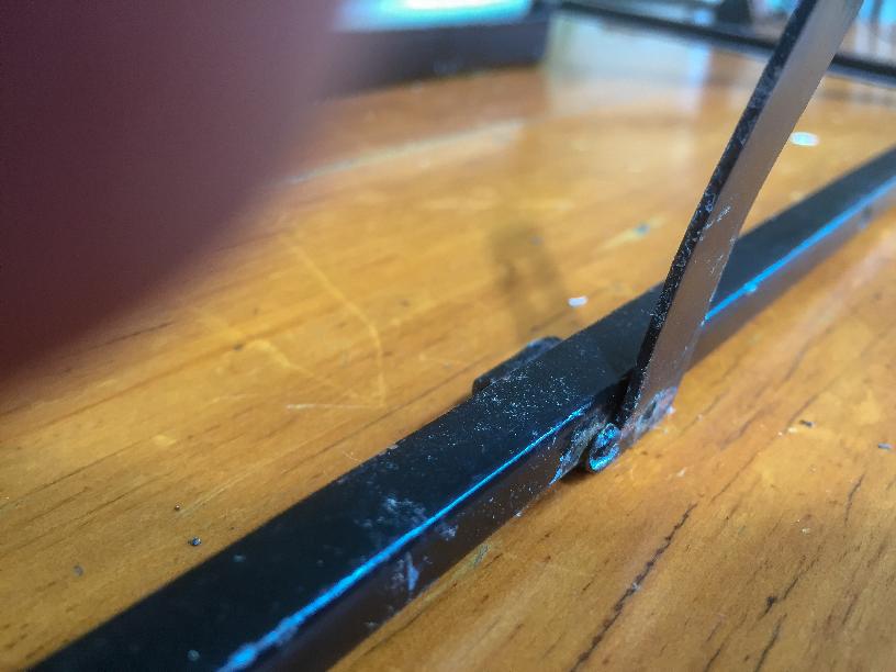 More photos, this time from: Mark Wellard in Australia. Top mounting backets fixed to the bonnet shut panel. Blind sitting in recess at bottom of mounting frame. The top of the frame showing fixing for the top bracket. A small screw is used for fixing but the end of the bracket has a return that wraps around the edge of the frame.