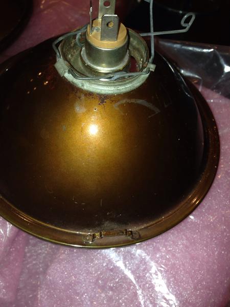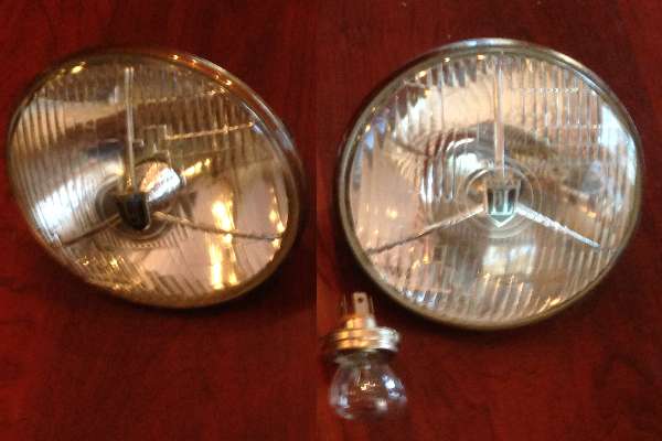 Here is a New Old Stock PL700. They are in their original boxes. They also have the original "christmas ornament" spherical bulbs. They have "LEFT HAND DRIVE" near the top and the number 556468 in the glass (but I think repros have these same markings). The backs are painted a orangish brown color.