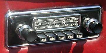This Blaupunkt "Frankfurt" radio is a fairly rare period type, one of the few with FM band which would work in North America in the late 50's and early 60's, and shortwave band to boot. The decor is also a very good match to the MGA dash appointments with black and chrome knobs and trim, closely matching font face, and plain white light for the dial face.